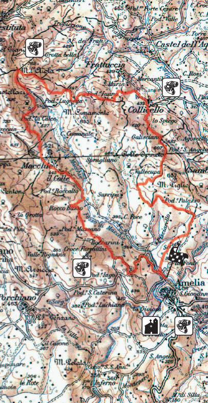 Leaving the village, continue your journey towards Frattuccia. Start the second climb of the itinerary that ends at the km 17. In the midst of trees and dappled forest light, take the path towards Macchie and start the descent. From this moment on, the route to the town of Amelia is easier.