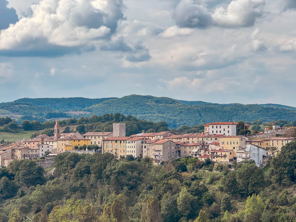 Le Tour MOTA est l’itinéraire principal du projet : une boucle cyclotouristique d’environ 320 km, avec un dénivelé total d’environ 5 000 mètres, qui traverse le territoire du lac Trasimène et les zones collinaires de l’Ombrie.
