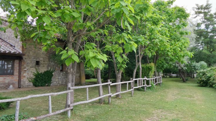 Nel parco-giardino di 8.000 mq, con piante ad alto fusto e siepi del casale, si trova anche la Casa sull'Albero Awen, costruita in legno secondo le tecniche della bioedilizia e collocata in un piccolo bosco di lecci. La tree house, la prima realizzata in Umbria, si affaccia a circa cinque metri di altezza sul laghetto sottostante con ninfee, che costituisce un richiamo per gli aironi cenerini e altre specie di uccelli di passaggio.