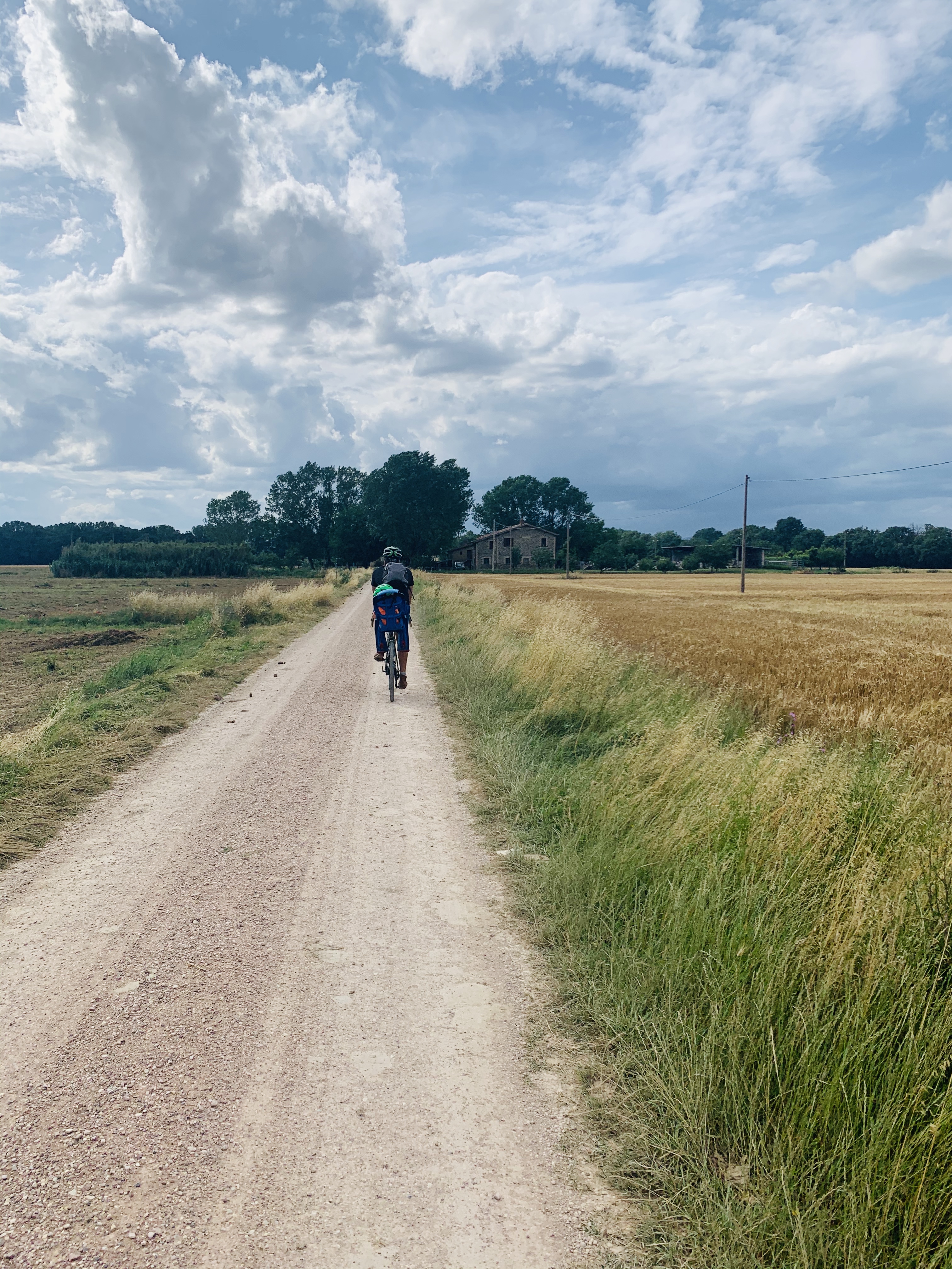 Da qui si prosegue ripercorrendo il percorso verde tra Ponte nuovo e Deruta, costeggiando campi coltivati e ripercorrendo anche se solo in parte, la ciclovia del Tevere, che da Deruta porta a Marsciano e Todi.